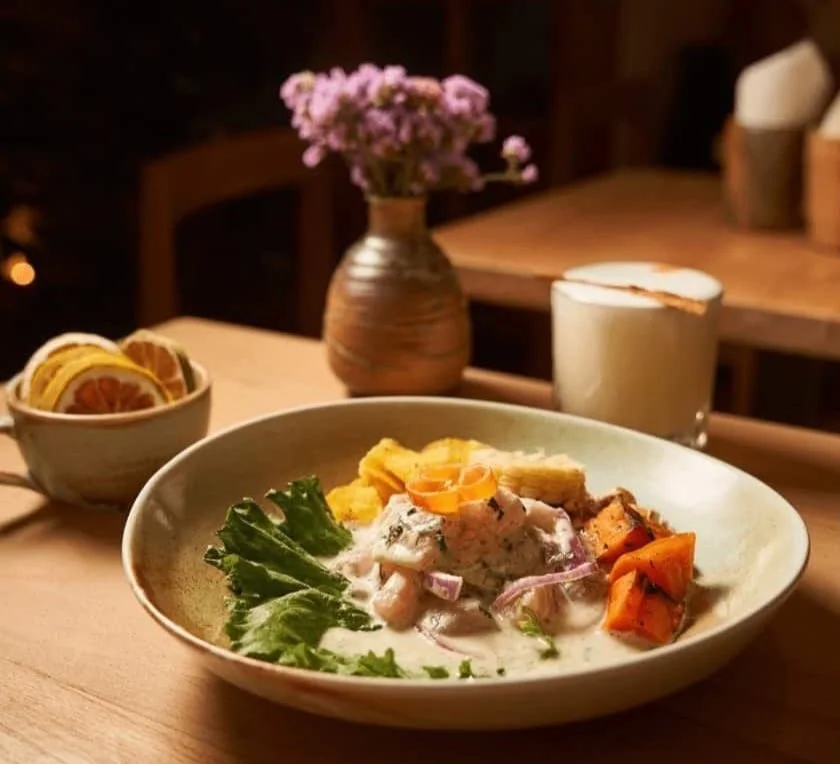 Atarraya (Brisas de Zicatela) es una cantina gastronómica al aire libre, con vigas de madera y un gran árbol central que crea ambiente local. Su cocina costera: tacos de camarón, tostadas de ribeye o atún, chiles rellenos, cocteles de autor y mezcalita, todo bien ejecutado con cuidado estético.